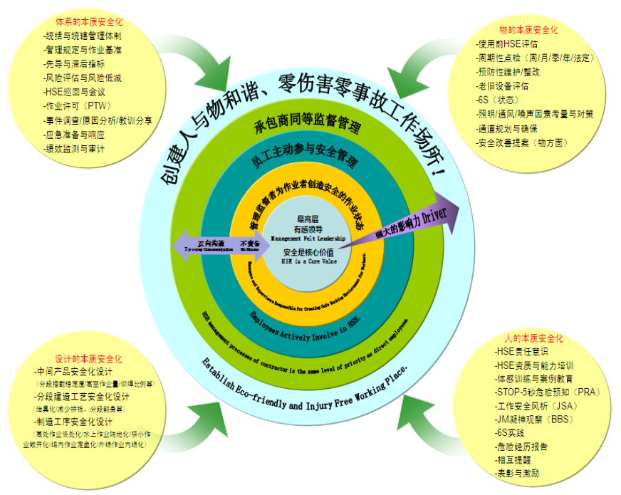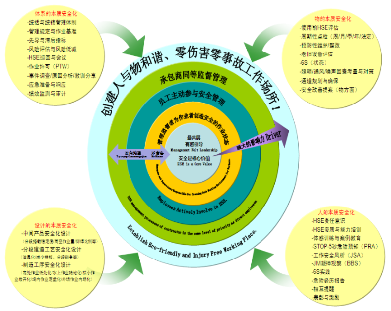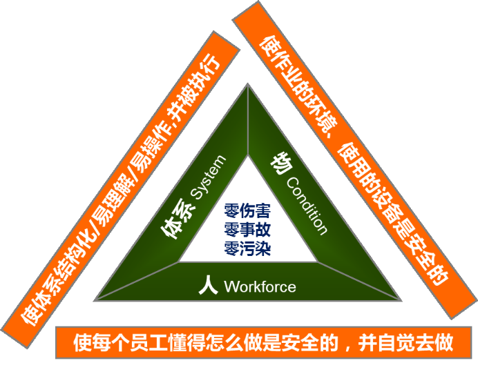 卓越安全绿三角:人、物、体系是实现卓越安全绩效的三要素。