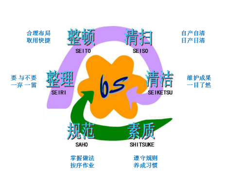 6S现场管理法:一切工作的基础。创造清清爽爽、一目了然的现场,实现人造环境,环境育人。
